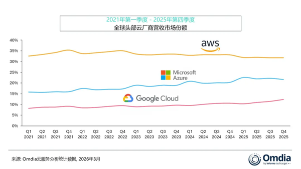 【CNMO科技音信】3月27日,凭证Omdia最新发布的数据,2025年第四季度大家云基础秩序工作支拨达到1109亿好意思元,同比增长29%,邻接第六个季度保捏20%以上的高速增长。其中,亚马逊云科技捏续领跑大家头部云厂商营收市集份额。